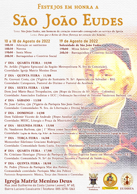PROGRAMAÇÃO DOS FESTEJOS EM HONRA A SÃO JOÃO EUDES 2022